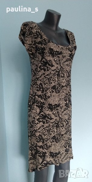 1. Колаж / L / 3XL - "Only". Рокля тип туника в змийски принт. Цената е крайна 27,99лв. Мека и ефектна рокля с издължена задна част, тип туника за по-голям размер. Има прилеп къси ръкави. Материята е вискоза и памук, много еластична и покрива няколко размера, една бройка е, без дефекти и етикет, като нова.