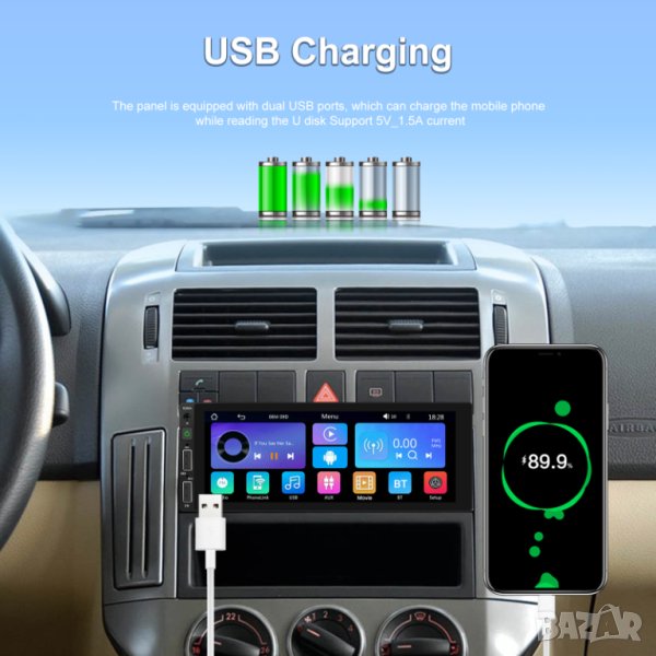 4. Два USB порта: Поддържа бърз зареждане (индивидуален USB порт за зареждане на телефона за Android и iOS)