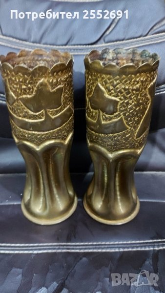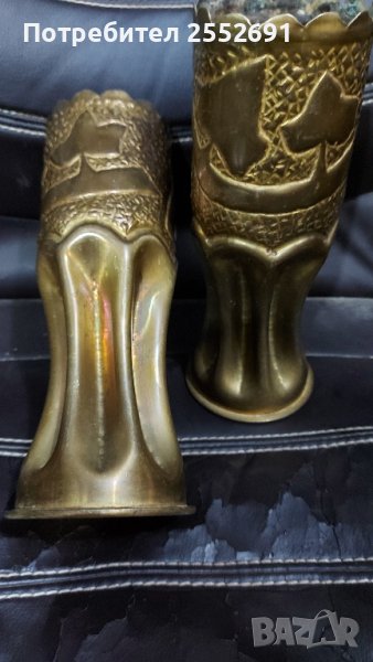 Уникални , бронзови /месингови/ ,ръчно изработени вази от гилзи на снаряди . 1915 и 1917г. Височина- 22,5см. Диаметър- 9см. Цената е за един брой.