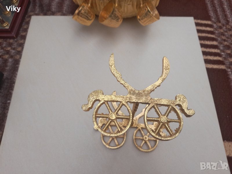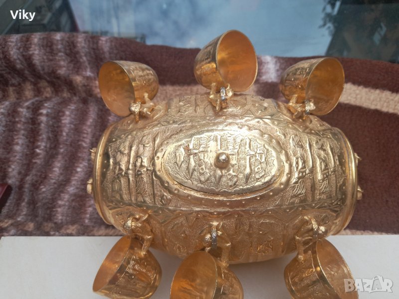 Месингово буренце с канелка с шест чаши комплект Стойка и поднос → Обява 42299398