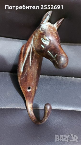 Масивна, бронзова, старинна закачалка- КОНСКА ГЛАВА . Дължина- 14см.