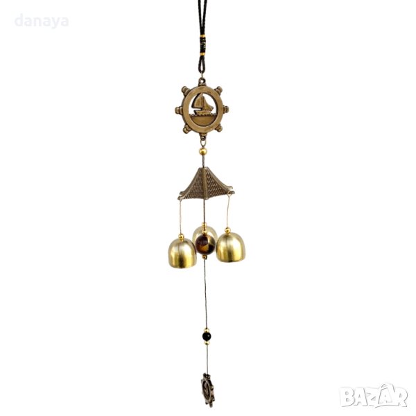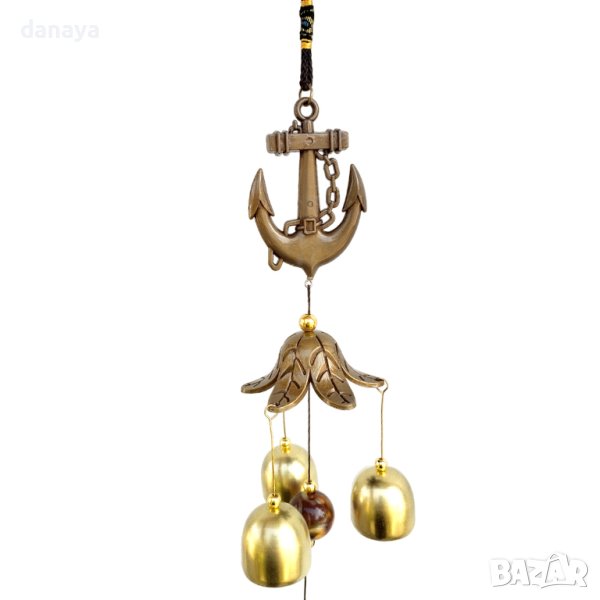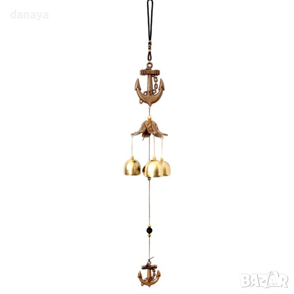 Метален вятърен звънец за окачване с морски елементи и три камбанки. Красива висяща декорация за дом, офиси, магазини и други помещения. Вятърният
