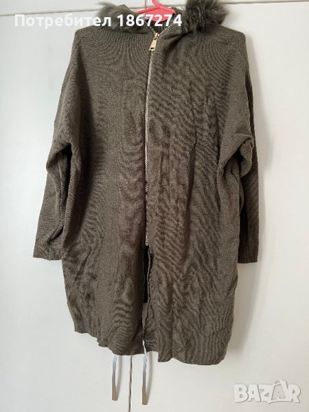 Жилетка с цип и с качулка, маслено зелен цвят - 35лв