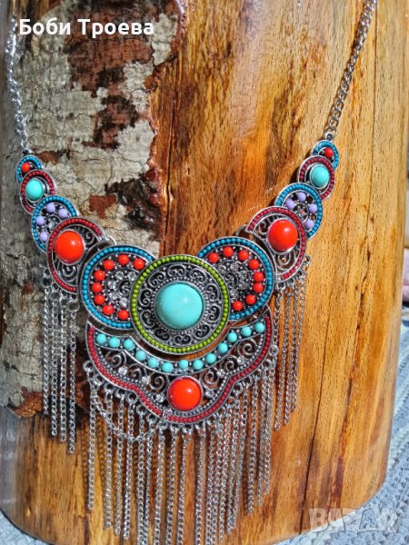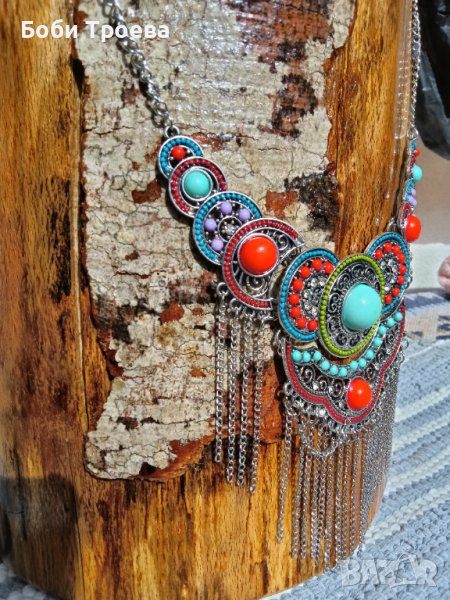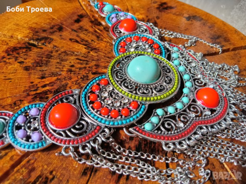 Елегантна огърлица със цветни камъни от верижка -цветни камъни във формата на → Обява 42301650