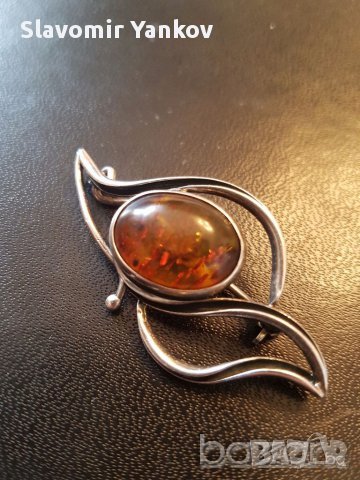 Сребърна брошка с естествен кехлибар → Обява 42302100
