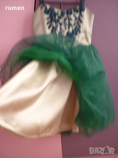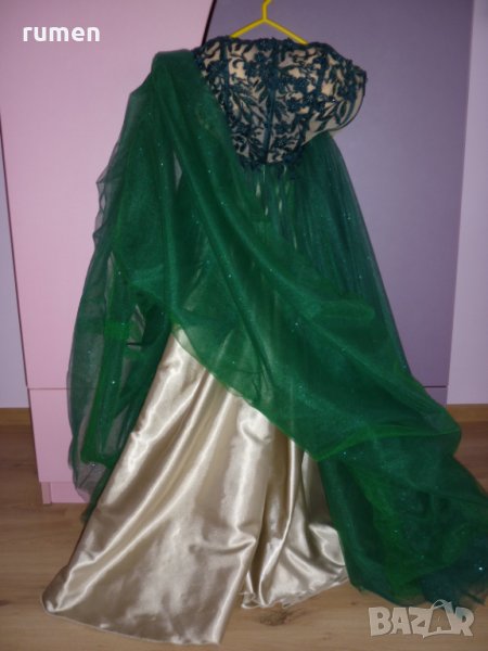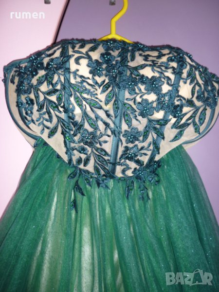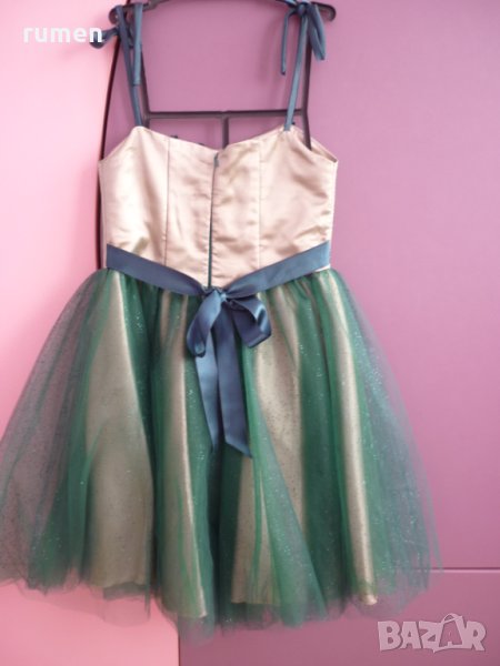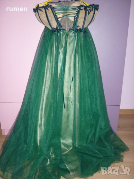Абитуриентска рокля, размер М цвят тъмнозелен с дантела и тюл три цвята.Отзад роклята има връзки ,които могат да се отпускат и стягат, има и цип обличана е само един път на бала.Цена 400лв.