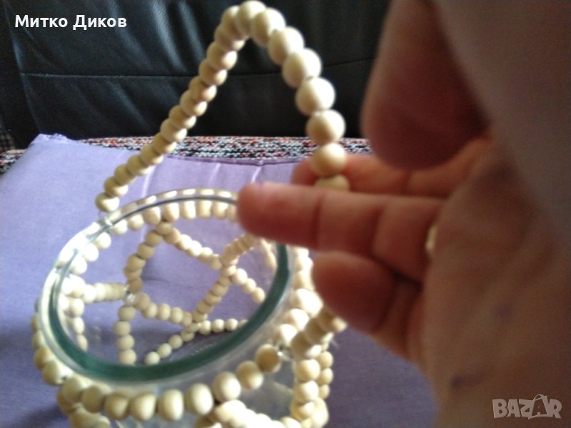 Терикатски буркан с плетена дръжка топчета за носене Н-125мм и фи -100мм-като нов-за слагане на различни неща-изпращам по еконт-по спиди