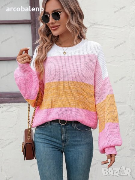 Дамски плетен моден пуловер с кръгло деколте, 3цвята