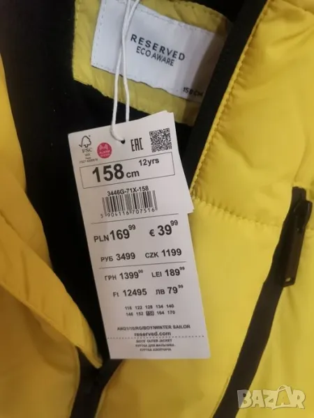 Ново Зимно Жълто яке с подплата за момче на Reserved 158см с етикет → Обява 42308329