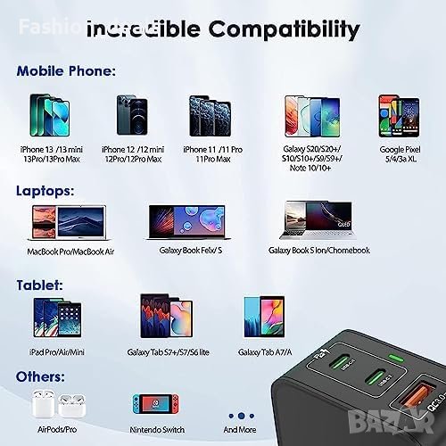 Компактен и удобен за пътуване дизайн. Съвместим с широк набор от устройства, включително лаптопи, смартфони, таблети и др