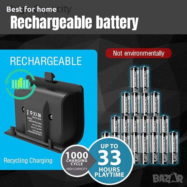 【Широка съвместимост】 Предлага се с 2 акумулаторни пакета батерии с национален сертификат от 1200mAh. Тази зарядна станция за Xbox One е съвместима само с контролери Xbox One, Xbox One S,
