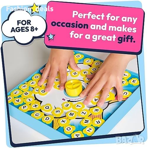 Включва игрално поле с изскачащ таймер, плочки с букви, карти с думи и инструкции