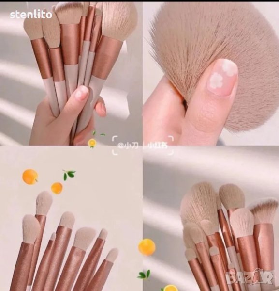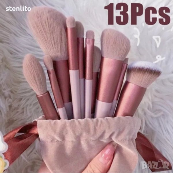 – 13 четки за грим – четки за сенки, четки за течно червило, четки за руж, четки за фон дьо тен, четка за коректор за грим, четка за пудра, четка за сенки за очи, четка за фон дьо тен.