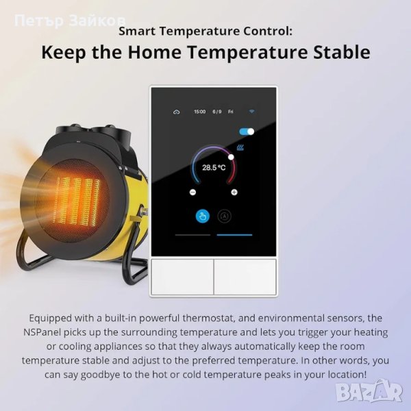 🌤【Термостат за домашна автоматизация】 С вграден мощен термостат можете да задавате различни вътрешни температури за различни периоди от време, а NSPanel автоматично ще задейства оборудването за отопление или охлаждане според вашите зададени условия, за да поддържа комфортна температура в стаята.