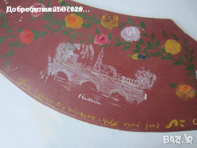 - Стокхолм Скандинавия Дървен ятаган нож с рисунки - 62х14 см, момина сълза, роза, декорация, мост, река, надпис - пано 17 евро
