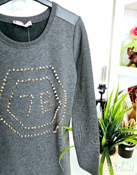 Тийн рокля Teto в сиво, с капси и кожени рамене. Размер 128 см 🛍 Тънко трико. За още моделчета разгледайте и останалите обяви в профила ми.