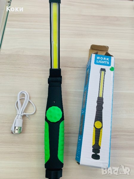 Работна лампа, с чупещо се рамо, ротация на 360гр. Зарежда се с USB кабел включен в пакета, магнитно залепване въртящо се на 360