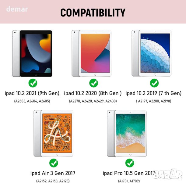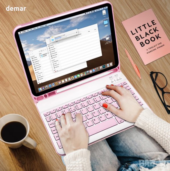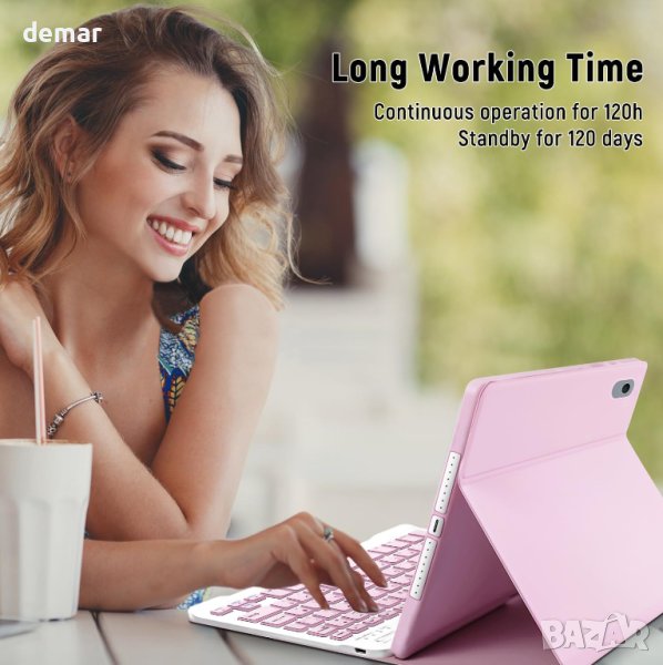 iPad с оформление за Великобритания, специално проектиран за различни модели iPad, включително iPad 10.2 9-то поколение 2021 (A2603, A2604, A2605), iPad 8-мо/7-мо поколение, iPad Air 3-то поколение и iPad Pro 10.5. Този универсален калъф предлага безпроблемна интеграция с Bluetooth клавиатура, включваща QWERTY оформление с бързи клавиши, персонализирани за iPad, подобрявайки вашето изживяване при писане и забавление. Оборудван с тихи клавиши с ножичен превключвател, този калъф с клавиатура осигурява плавно, безшумно и ефективно писане. Осезаемите, нископрофилни клавиши с оптимален ход предлагат максимален комфорт за върховете на пръстите ви, което го прави идеален за писане на имейли, чат или работа. Безжичната клавиатура е магнитно прикрепена към издръжлив защитен калъф и може лесно да се отдели, когато не се използва. Превърнете вашия iPad в лаптоп за секунди и се насладете на QWERTY оформление с клавишни комбинации, персонализирани за iPad. Изработен от висококачествена кожа, калъфът предпазва вашия iPad от случайни изпускания и удари, докато меката, неплъзгаща се вътрешност предотвратява надрасквания. Интегрираният държач за Apple Pencil гарантира, че вашият стилус е винаги под ръка. (Забележка: Apple Pencil не е включен.) С вградена презареждаема батерия, клавиатурата влиза в енергоспестяващ режим, за да осигури най-малко 120 часа непрекъсната работа и 120 дни в режим на готовност при пълно зареждане. С три вдлъбнатини за регулируеми ъгли на гледане и дизайн против хлъзгане, този калъф е идеален за работа, писане или гледане на видеоклипове на работа, в училище, при пътуване и у дома, осигурявайки комфортно изживяване при гледане.