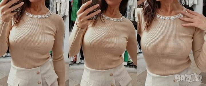 Нов модел!Рипс блуза плетиво с ефектно колие → Обява 42326434