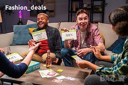 Включва 210 карти с въпроси, 6 двустранни индикатора за отбор, 6 дъски за сухо изтриване, 6 химикала за сухо изтриване и пълни инструкции.
