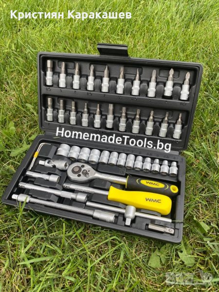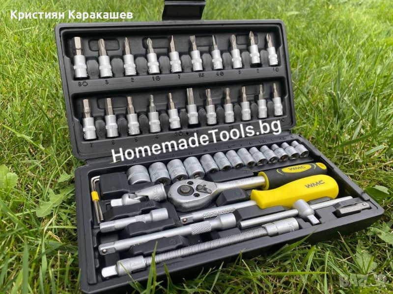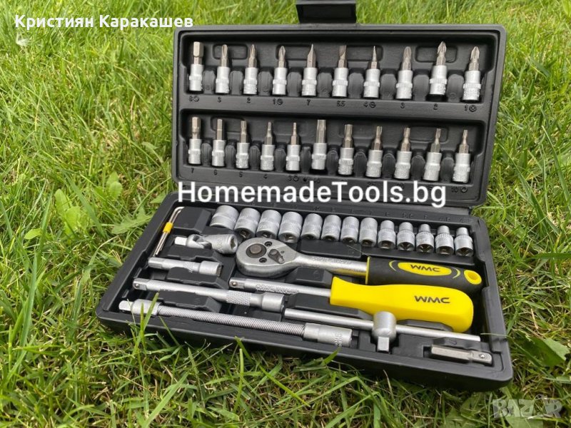 Висококачествен комплект от 46 части гедоре 1/4 на марката . Комплекта е изработен от висококачествена стомана и е достатъчно устойчив на тежки натоварвания. Инструментите са прегледно подредени в пластмасова кутия за удобно съхранение и транспорт.