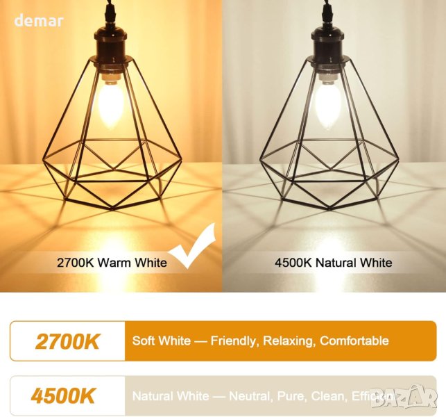 2700K ярка и естествена мека бяла светлина с 320-градусов ъгъл на лъча,