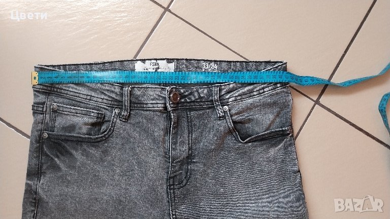 Дънките са модел Skinny, размер 33/34, но според мен са умалени. Ширина на талията едностранно 41см, цялостна дължина 108см. Нямат забележки