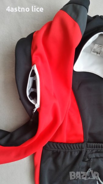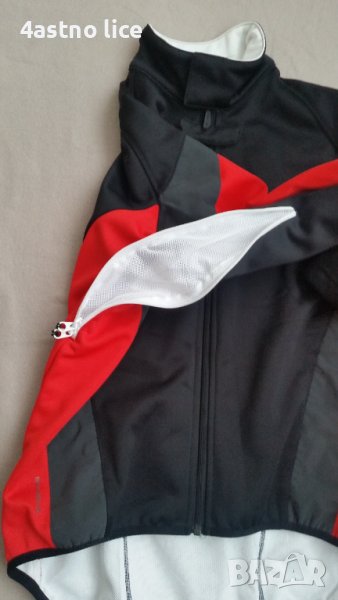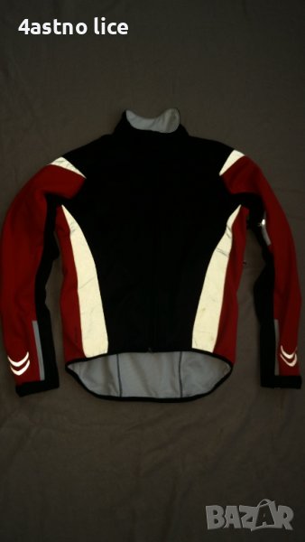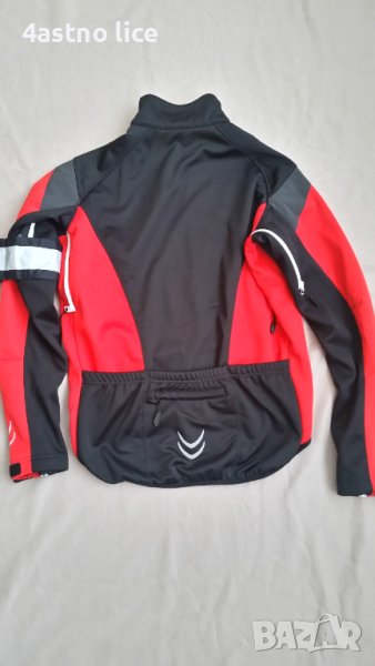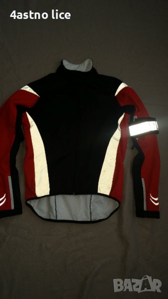 B'TWIN яке за колоездене в отлично състояние, има отвори за проветряване под мишниците и сигнална лента за каране в тъмно,която се прибира в малък джоб на ръкава.