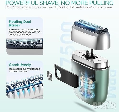 Плаваща двойна глава с 2 ножчета за внимателно и удобно бръснене.