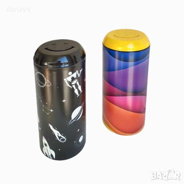 Голяма спестовна касичка в цилиндрична форма и капак Усмивка. С тази касичка детето ще може да спестява стотинка по стотинка, банкнота по банкнота, а спестените пари ще оползотвори за изпълнението на своя мечта, било то предмет, подарък, пътуване и т.н.