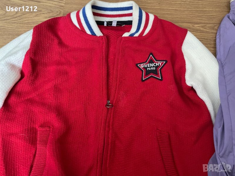 Дамски якета на Живанши и Дискуаред . Лилавото е ветровка , има качулка , която се вади отделно . Червеното е плътно , идеално е за преходни сезони . Има много леки следи от носене . Цената е за брой