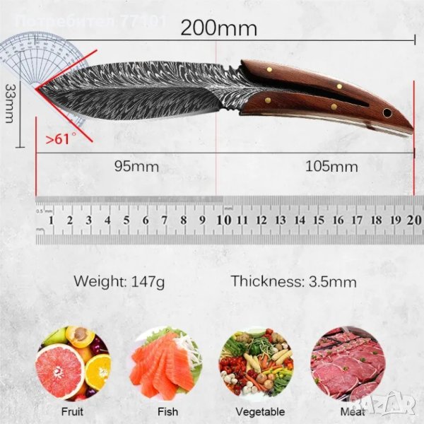 Кухненски нож Нож за обезкостяване Лов на открито Нож за къмпинг Ръчно изработен кован нож Военен нож - подходящ за оцеляване на къмпинг на открито.