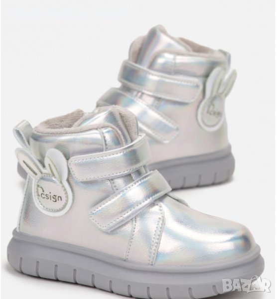 Красиви и топли бебешки термо боти за момиче в сребристо със зайче FLIP