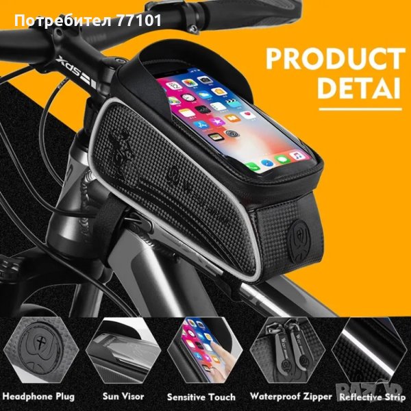 Водоустойчива чанта Bike Frame Front Top Tube Bags Велосипеден сензорен калъф за екран на телефон за мобилен телефон MTB Moutain Road Bike Bag