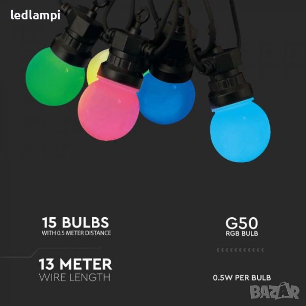 - 13 метра кабел с поредица от лампи, проектирана с RGB цветна температура