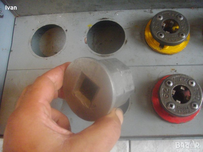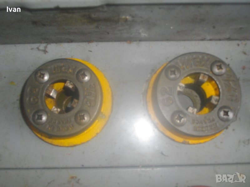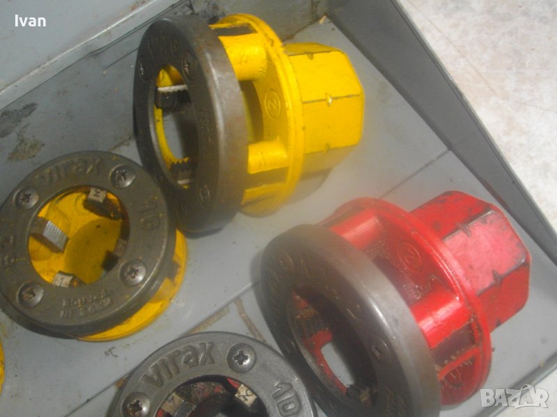 Глави резбонарезни в комплекта - ощо 10 бр, от които 5 броя са жълти - за лява резба, съвсем нови, неупотребявани и неизоплзвани. Размери на главите - 3/8, 1/2, 3/4, 1 цол, 1 1/4 цол.