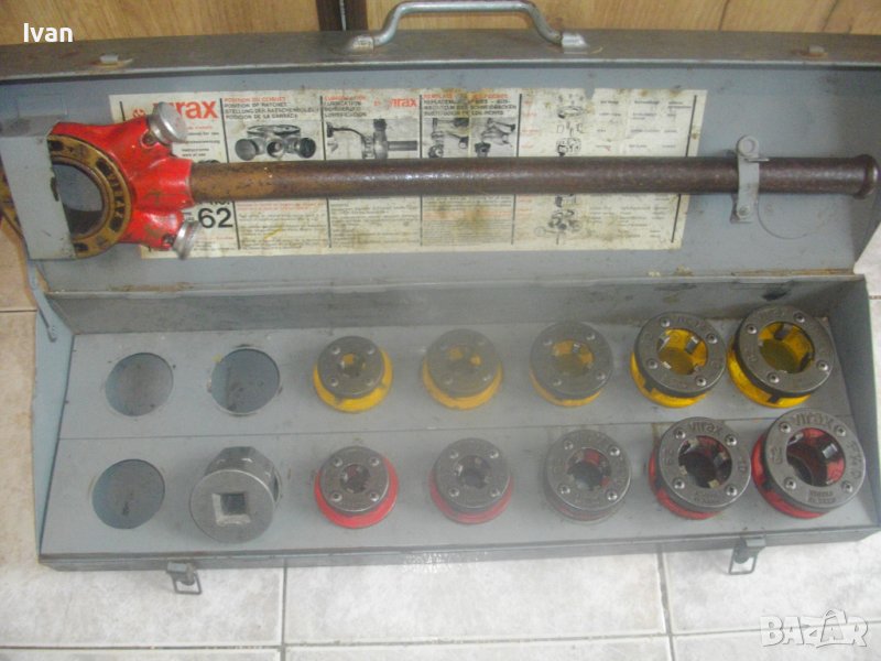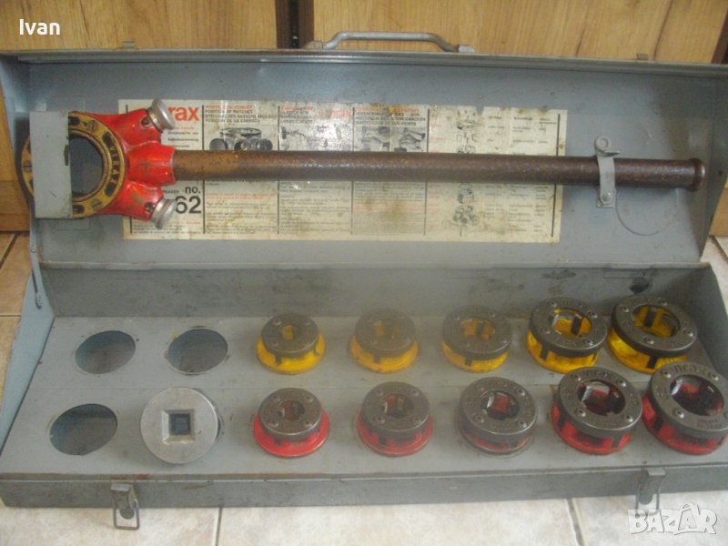 Винтонарезка VIRAX 62 - Made in FRANCE - за резбонарезни глави размери от 3/8 цол до 1 1/4 цол. Ползвана, в отлично състояние и с много запазен външен вид. Тресчотъчните механизми раотят много добре. Дължина 635 мм.