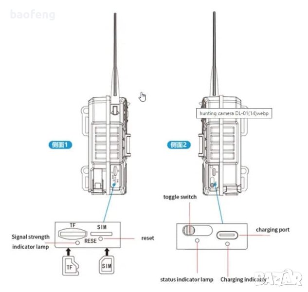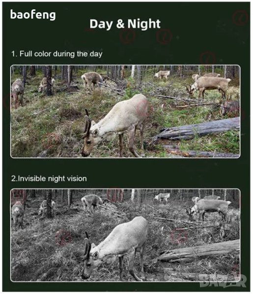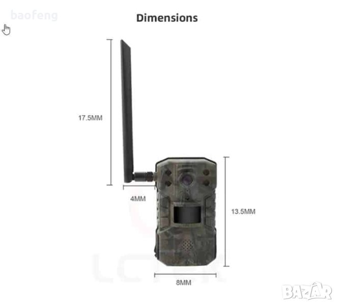 Приложение: Неговият мощен PIR сензор прави снимки и видеоклипове с висока резолюция, които достигат до вашия мобилен телефон чрез интуитивно ПРИЛОЖЕНИЕ. Така от мобилното устройство можете напълно да управлявате оборудването и дори да наблюдавате видеото на живо и в реално време, навсякъде и по всяко време.