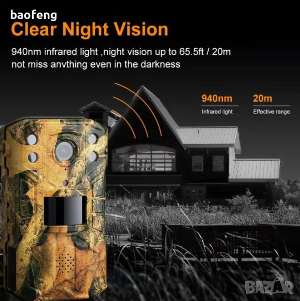 Нощно виждане: Поддържа автоматично превключване към режим на нощно виждане с обхват на видимост от 32 фута (10 метра). Дори в тъмни нощи ще можете ясно да виждате какво се случва около вас.