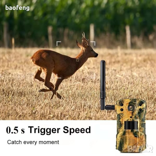 Приложение: Неговият мощен PIR сензор прави снимки и видеоклипове с висока резолюция, които достигат до вашия мобилен телефон чрез интуитивно ПРИЛОЖЕНИЕ. Така от мобилното устройство можете напълно да управлявате оборудването и дори да наблюдавате видеото на живо и в реално време, навсякъде и по всяко време.