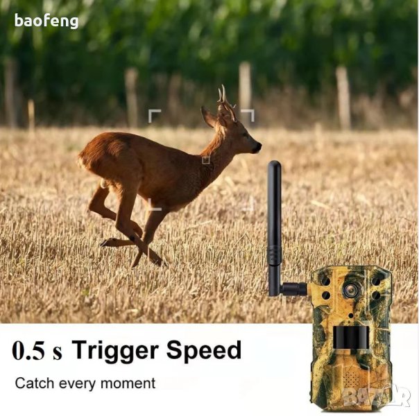 Приложение: Неговият мощен PIR сензор прави снимки и видеоклипове с висока резолюция, които достигат до вашия мобилен телефон чрез интуитивно ПРИЛОЖЕНИЕ. Така от мобилното устройство можете напълно да управлявате оборудването и дори да наблюдавате видеото на живо и в реално време, навсякъде и по всяко време.