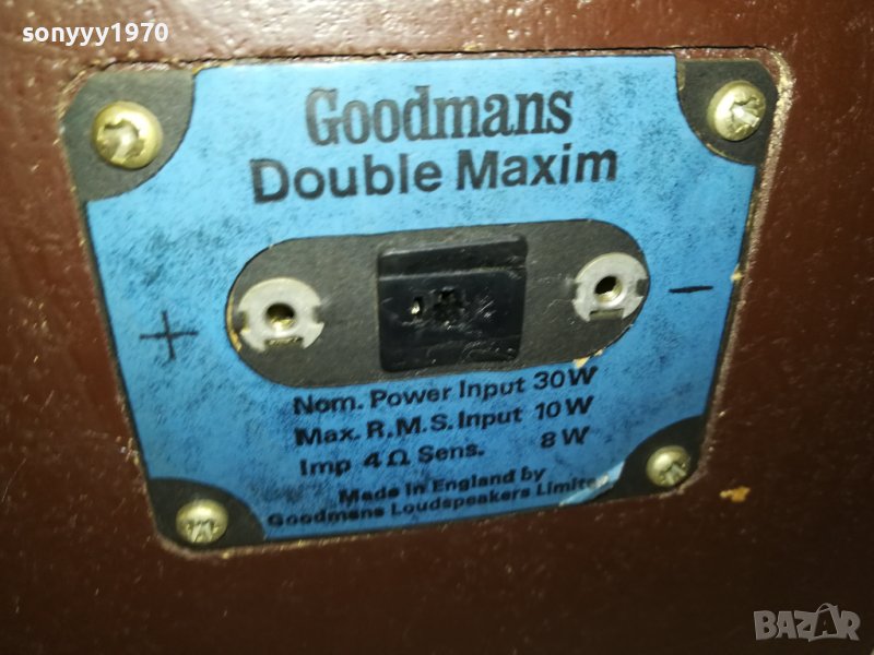 GOODMANS DOUBLE MAXIM-MADE IN ENGLAND-45Х19Х18СМ 2БР МНОГО ТЕЖКИ ЗДРАВИ ТОНКОЛОНИ-НОВ ВНОС БЕЗ РЕМОНТИ-ЕДНАТА ИМА КОЗМЕТИЧНИ ЗАБЕЛЕЖКИ ПО РЪБА-СВИРЯТ СИ-РЕШЕТКИТЕ НЕ СЕ ЗАДЪРЖАТ ЗА КОЛОНИТЕ СЛЕД КАТО ГИ СВАЛИХ ЗА СНИМКИ-КРАЙНИ ЦЕНИ.ПАЗАРЛЪЦИ НЕ! пращаме със спиди или еконт с преглед и тест след превод на капаро за куриерската услуга поради зачестили некоректни потребители-поръчки само тук в саита! по телефона и със смс не! краини цени! бартери не правиме! ПАРИ НЕ ВРЪЩАМЕ! всеки ден нови неща-още 2-3 наши обяви тук