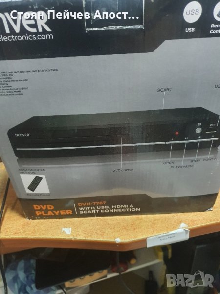 Denver DVH7787 DVD плейър HDMI за телевизори, Mini, Всички региони безплатно, 1080P мащабиране, Dolby Digital, USB, коаксиален, Scart, черен