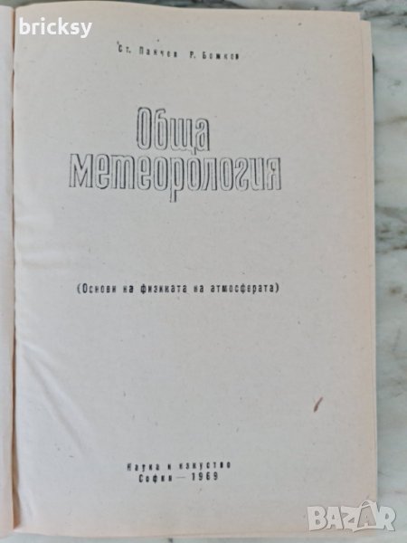 Много добре запазен учебник "Обща метеорология Основи на физиката на атмосферата" с автори Ст. Панчев и Р. Божков. Издателство Наука и изкуство, София,1969 г.483 стр. Има и карта - приложение (снимка 4) Тираж от едва 1065 бройки.