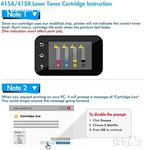 Голям капацитет: 415A W2030A Черна тонер касета 2400 страници, 415A W2030A Cyan Yellow Magenta тонер касета 2100 страници, корица 5% (букви/A4)