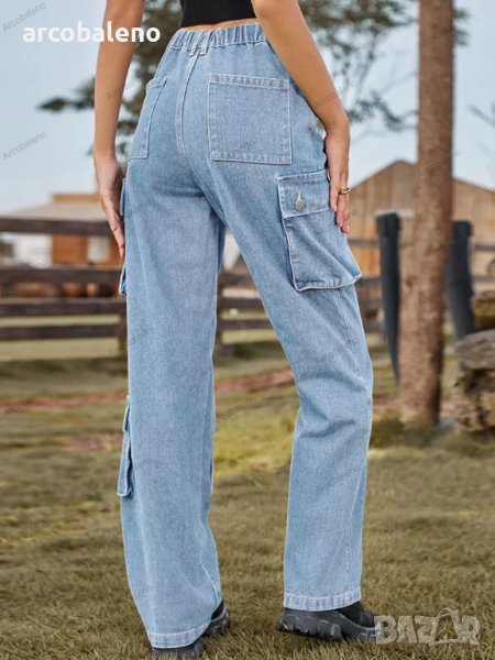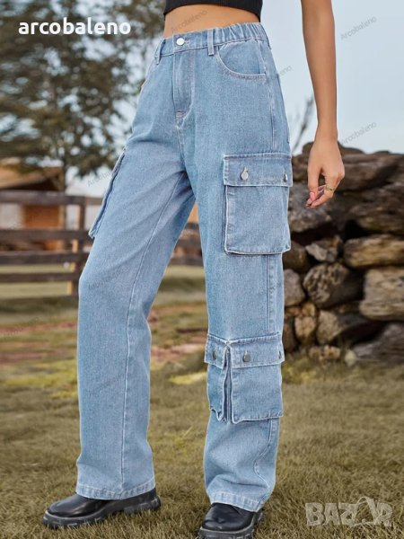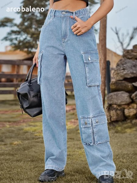 Нови ежедневни изпрани дамски дънки с много джобове, 2цвята