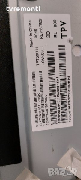 борда е гарантирано работещ Демонтиран от телевизор PHILIPS МОДЕЛ 50PUS6503/12, със счупен дисплей TPT500U1-QVN03.U REV.S7B0F тесвана от нашия техник