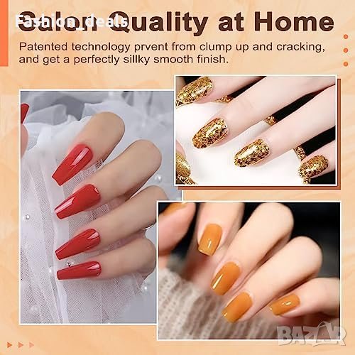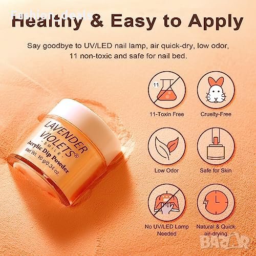 Не е необходимо втвърдяване с лампа за нокти; при правилно нанасяне може да издържи до 3 седмици