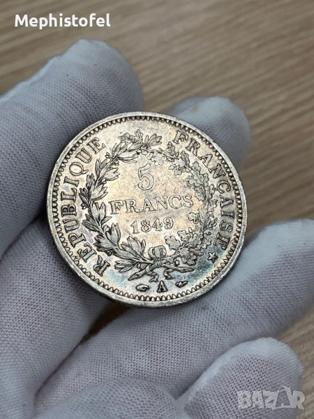 Стара и голяма сребърна монета, отсечена по времето на Втората република във Франция, просъщестувала за кратък период от 1848 до 1852 година - 25 грама каталожно тегло, 37 мм, проба 0.900, изпъкнал текст на гурта.