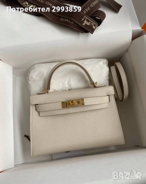 Подарете си много радост и малко лукс със световноизвестното мини бижу чанта Ермес Кели, налична в 19см размер млечно или т.нар. Craie
